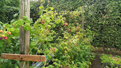 I planted raspberries a few years ago and they're doing fantastic but the variety I bought leans over, so I had to prop them up as you have done. For some reason, the variety that my mum had stood up by themselves.